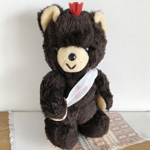 ヴィンテージベアとしてはそれほど古いものではありませんが、使われている王冠や目、タスキの素材は東ドイツ時代のものです。