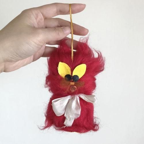 軽くて、頭に縫いとめられている黄色の紐でぶら下げて飾ることができます。