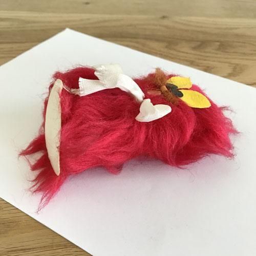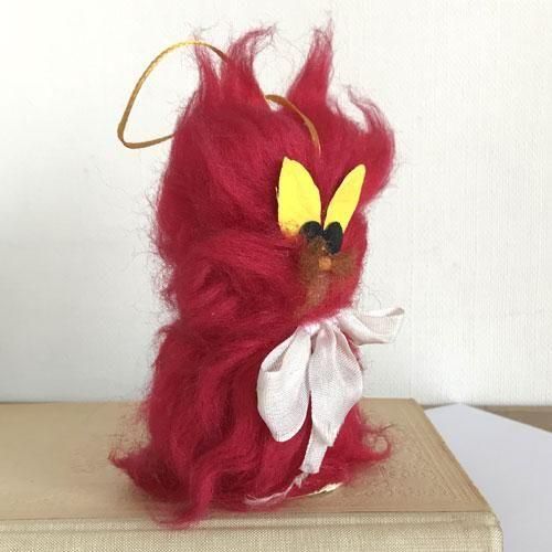 真っ赤なふわふわファーと黄色いお目目がとっても印象的!