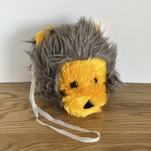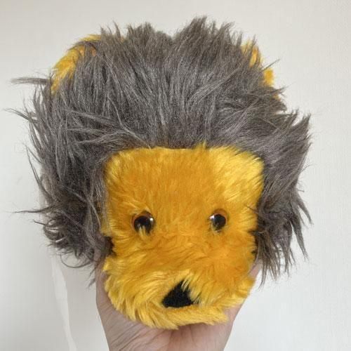 お顔だけで紐がついている不思議なライオンさん、実は手袋のように使うものです。