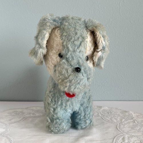 チェコスロヴァキア ヴィンテージのぬいぐるみ 水色と白の犬