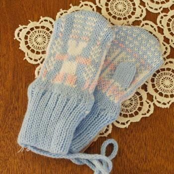 手の甲の部分のくまさん柄もかわいいですが、手のひら側の編みこみ模様もかわいくて、なかなか凝っています。