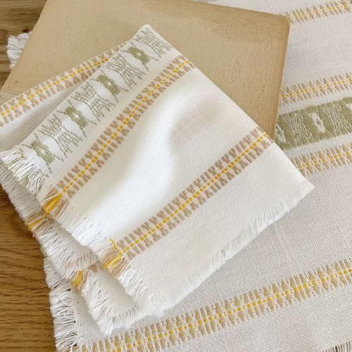 東ドイツ時代のヴィンテージ織物クロス ベージュとカーキのライン模様