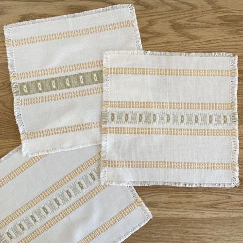 縦横30cmくらいの使いやすいサイズで、ぬいぐるみや木製品などの置物の下に敷くと、雰囲気がぐっと増します。
