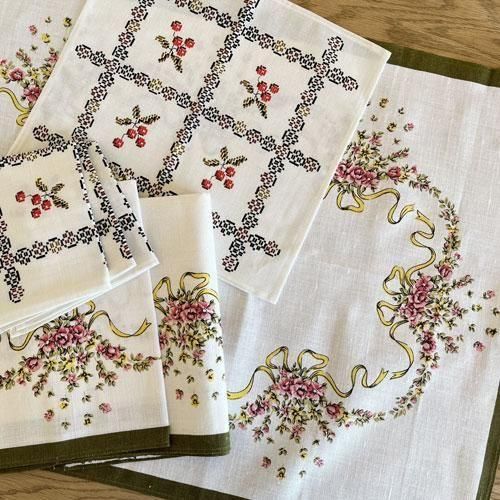 チェコスロヴァキア時代のヴィンテージクロス(未使用)お花とリボン