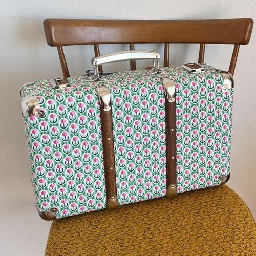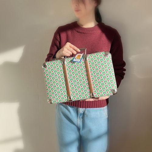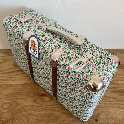 【完売・再入荷不可】チェコ製の布張スーツケース 水玉チューリップ 緑色 大