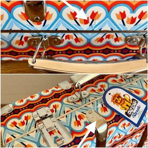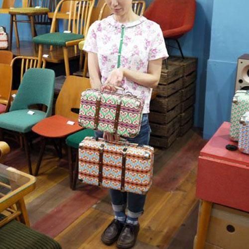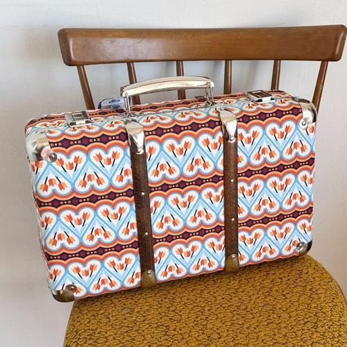 昔から変わらないKAZETOのレトロな形のスーツケースと、モダンな柄の布の組み合わせが絶妙でとてもかわいいです。