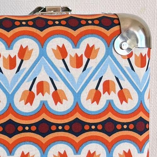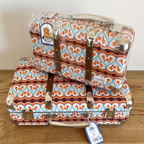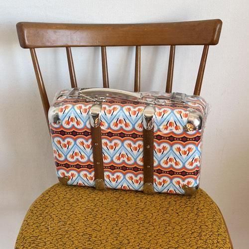 昔から変わらないKAZETOのレトロな形のスーツケースと、モダンな柄の布の組み合わせが絶妙でとてもかわいいです。