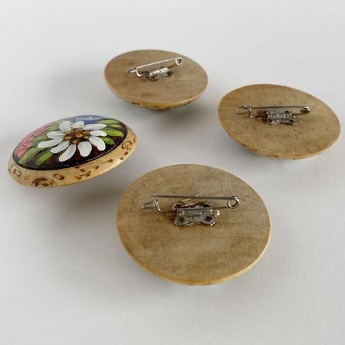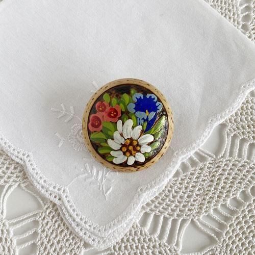 ドイツ・アルプス地方の木製ブローチ アルプスの花 大