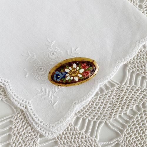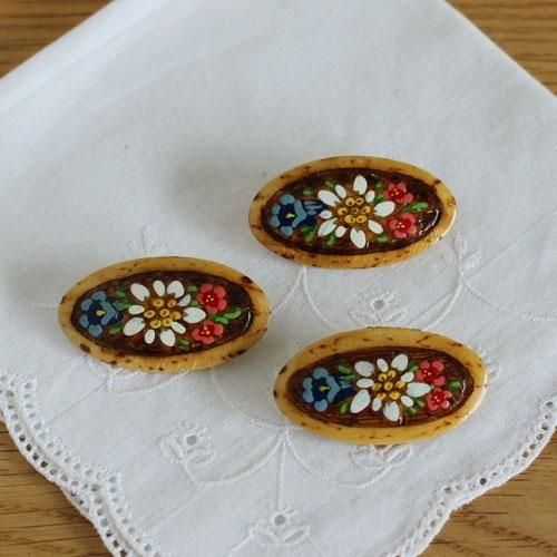 ドイツ・アルプス地方の木製ブローチ アルプスの花 楕円