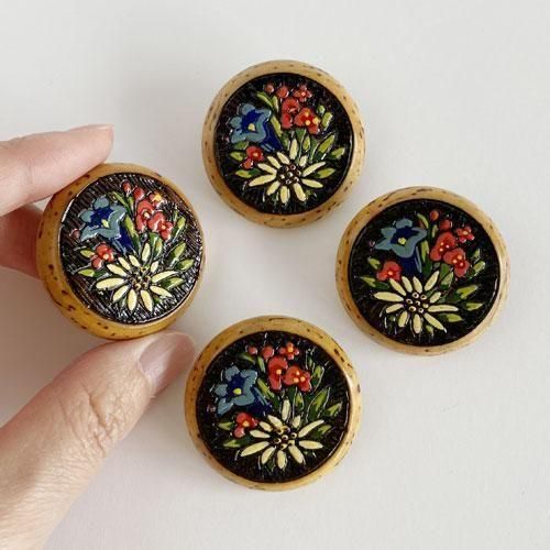 ドイツ・アルプス地方の木製ブローチ アルプスの花 中
