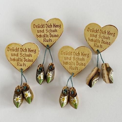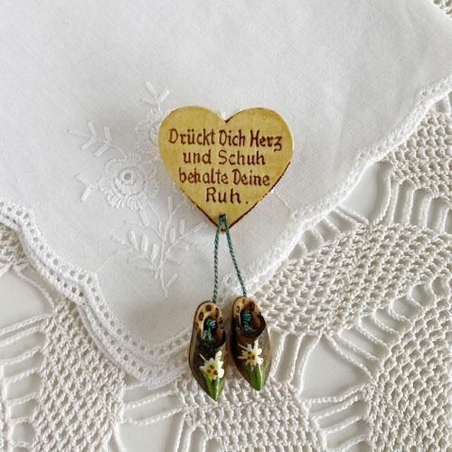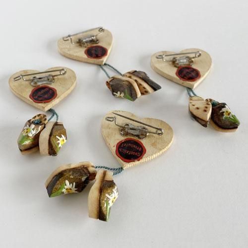 ドイツ・アルプス地方の木製ブローチ ハートと靴