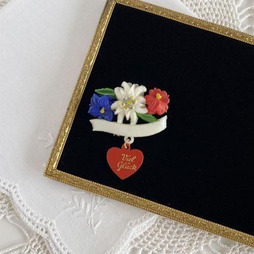 ドイツ・アルプス地方のビンテージブローチ 揺れるハート