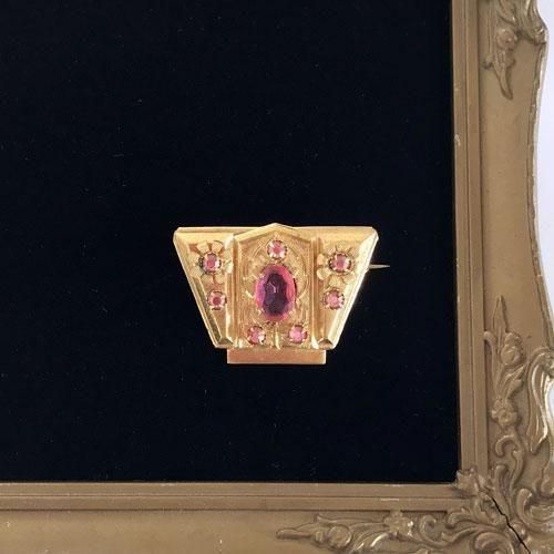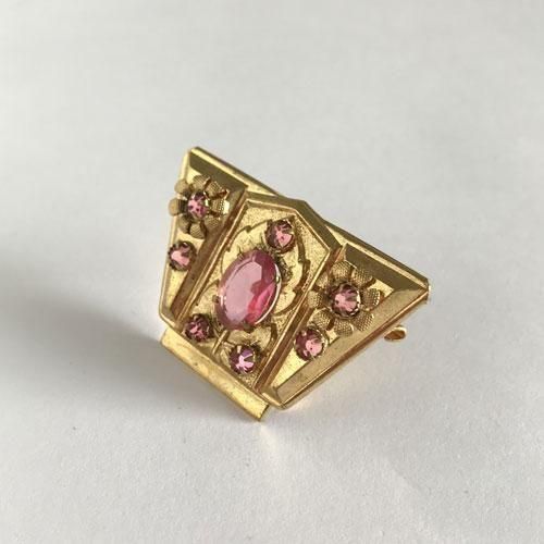 チェコ アールデコ時代のヴィンテージブローチ ピンクガラス