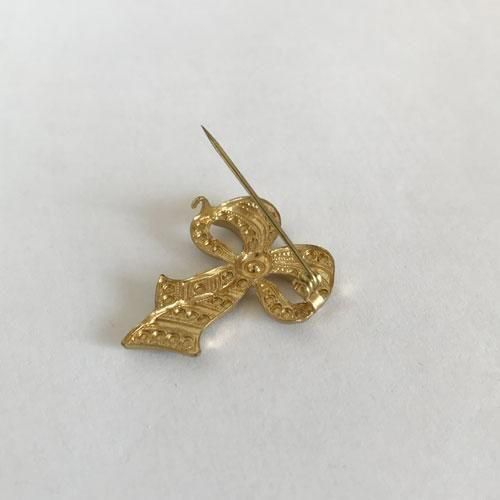 一つ一つ丁寧に打ち出して作られた金属はとても繊細で、ガラスの加工技術とともに金属の加工技術も発展したヤブロネッツならではの美しいブローチです。