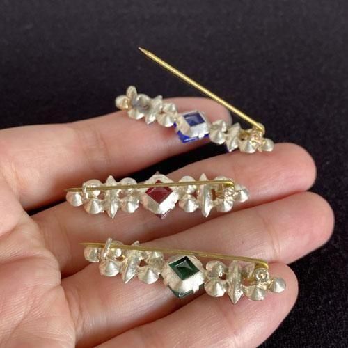 チェコガラスのヴィンテージブローチ スクエアストーン 3種類