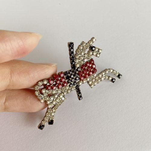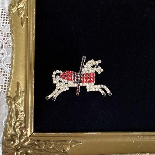 チェコ ガラス製ラインストーンのブローチ 木馬