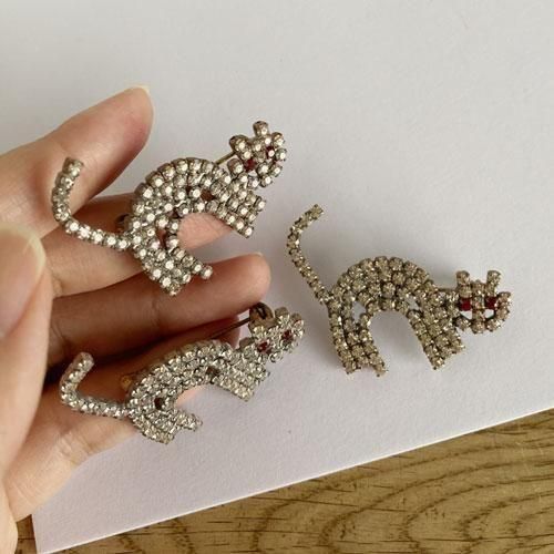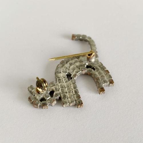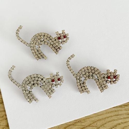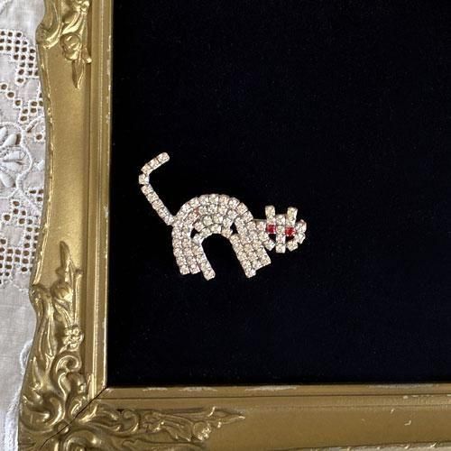 チェコ ガラス製ラインストーンのブローチ 尻尾ピーン猫 クリア