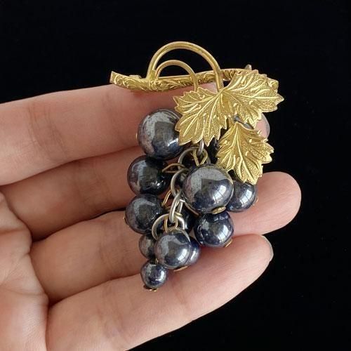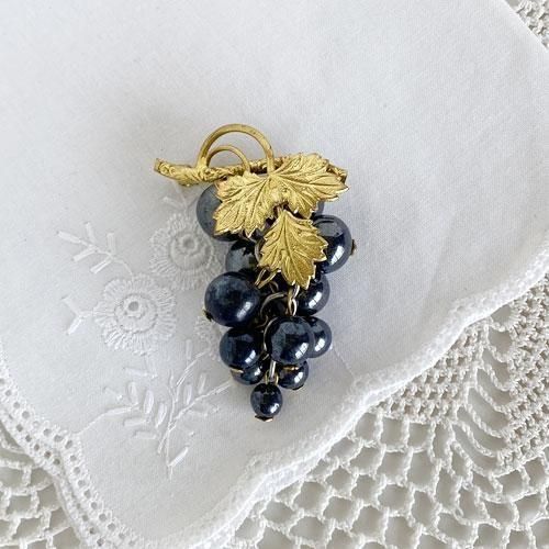 チェコスロヴァキア時代のヴィンテージブローチ ぶどう グレー