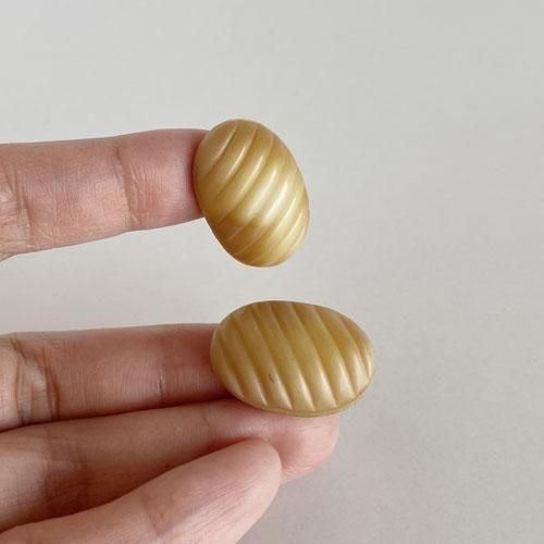 縦2.5cmと大きめのガラスカボション自体が珍しいですが、おそらくひとつひとつ手作りで作られており、ベージュと茶色のグラデーションカラーがとても美しいです。