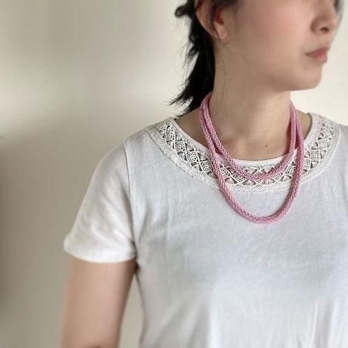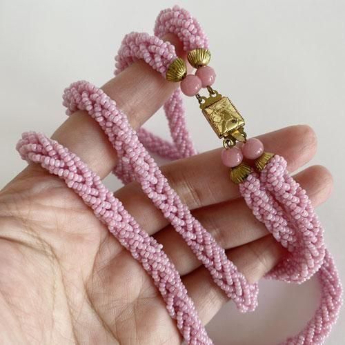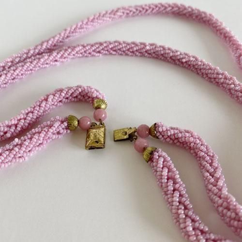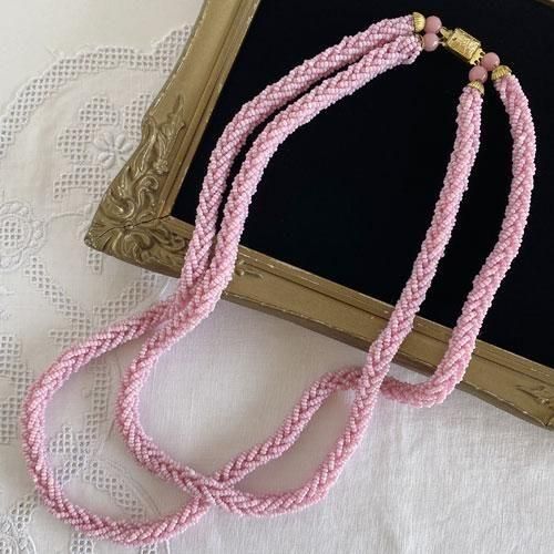 チェコのヴィンテージネックレス ピンクの編み込み二連