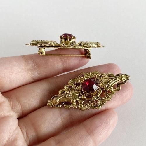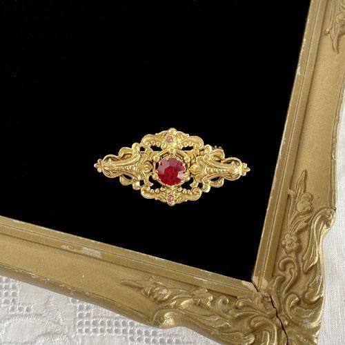 チェコスロヴァキア時代のヴィンテージブローチ 深赤色のラウンドガラス