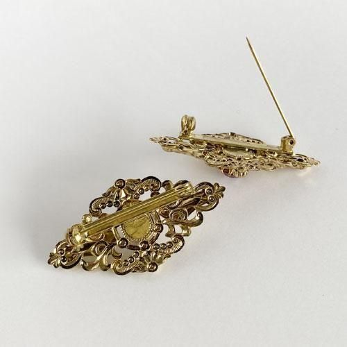 一つ一つ丁寧に打ち出して作られた金属はとても繊細で、ガラスの加工技術とともに金属の加工技術も発展したヤブロネッツならではの美しいブローチです。