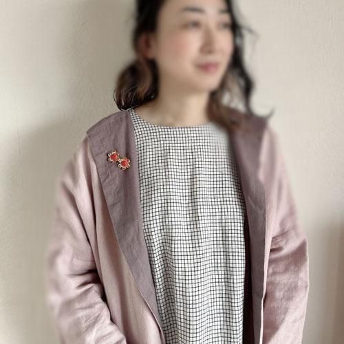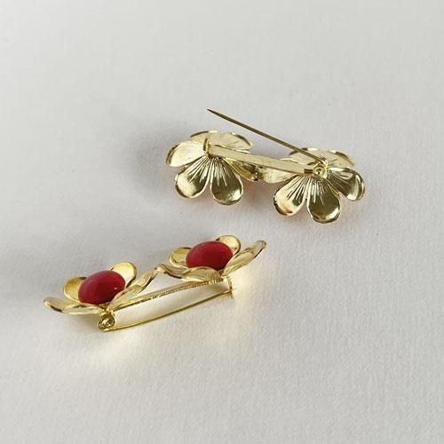 1930〜40年代に作られていたブローチの型を使って近年作られたもので、金属部分はプレス機で真鍮をプレスし、ゴールドメッキがかけられています。