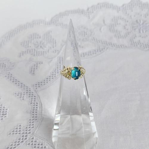 チェコスロヴァキア時代のヴィンテージリング 77 約12-13号 多面カット(小)水色