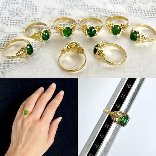 チェコスロヴァキア時代のヴィンテージリング 78 約12-13号 多面カット(小)緑