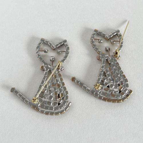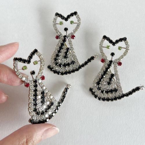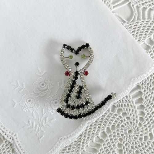チェコ ガラス製ラインストーンのブローチ おすまし猫
