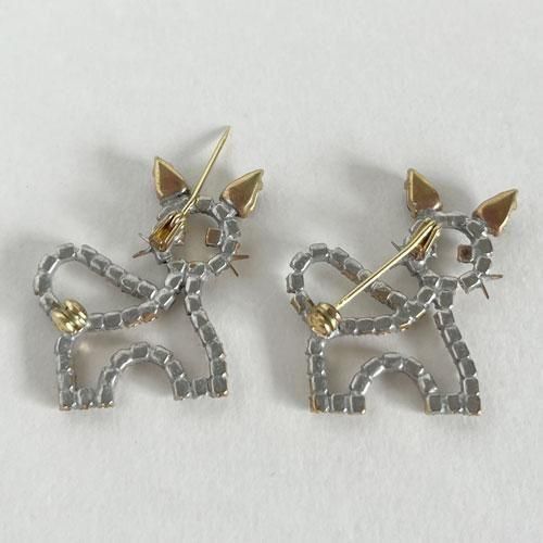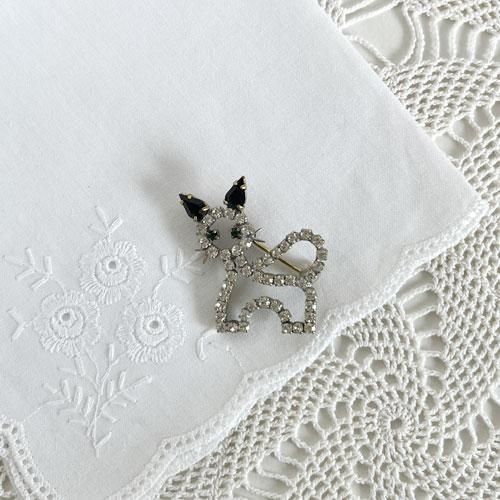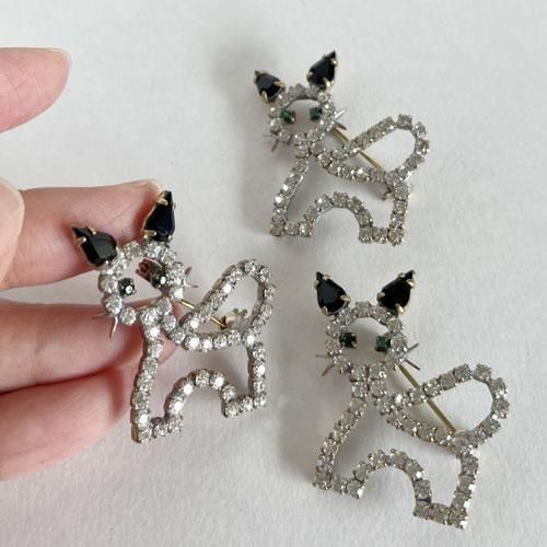 チェコ ガラス製ラインストーンのブローチ 子猫