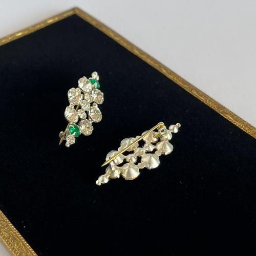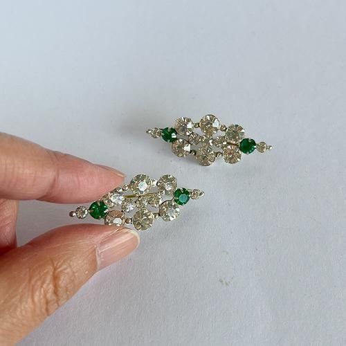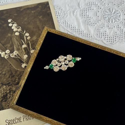 チェコスロヴァキア時代のヴィンテージブローチ 二粒の緑ガラス