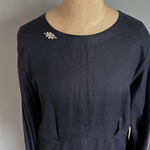横3.5cmほどの小さめのブローチですが、使われているガラスストーンはとても綺麗に輝き、コーディネートの良いアクセントになってくれそうです。