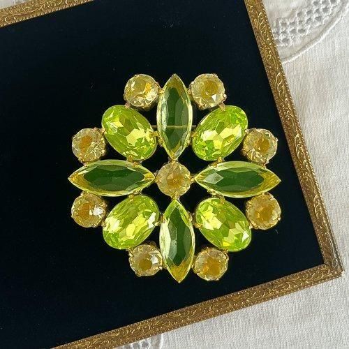 チェコ製 ウランガラスストーンの大きなブローチ