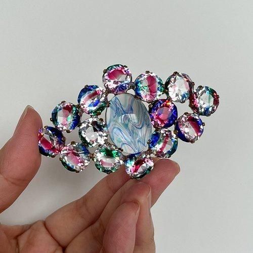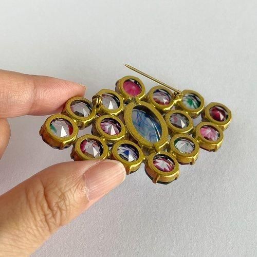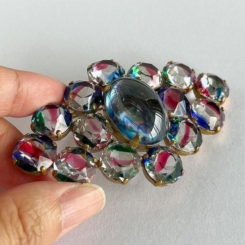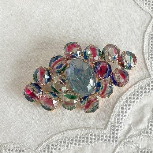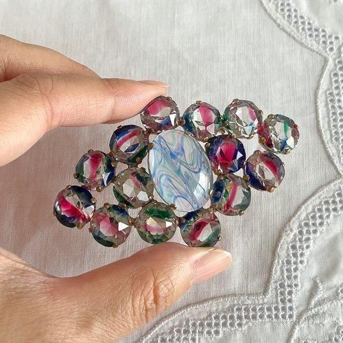 チェコ製 アイリスガラスのブローチ ひし形 B
