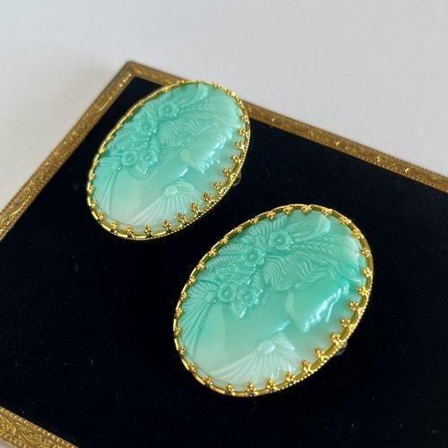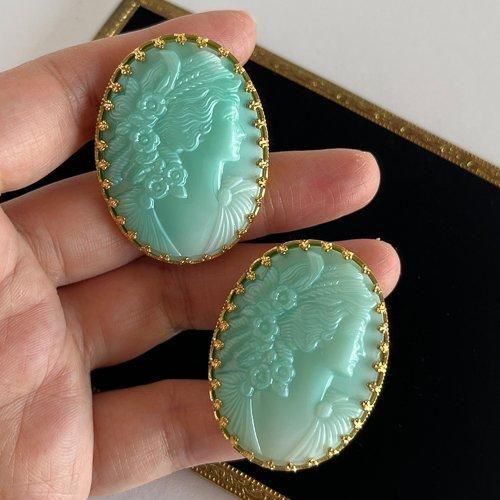 乳白色の緑から白のグラデーションがとても美しいカメオです。