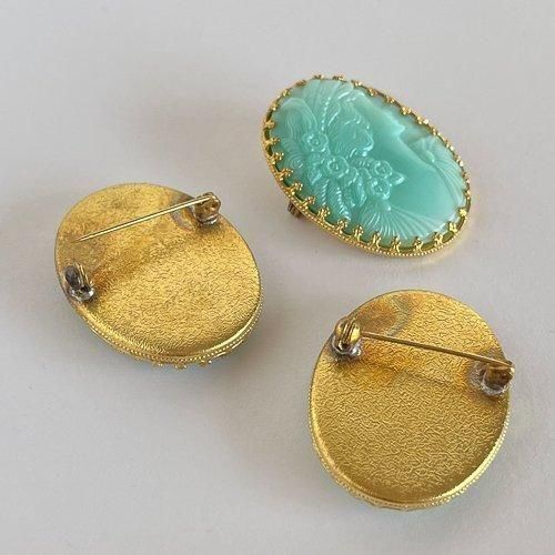 チェコ製ウランガラスのブローチ ヴィンテージのカメオ