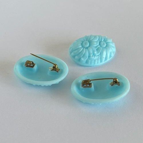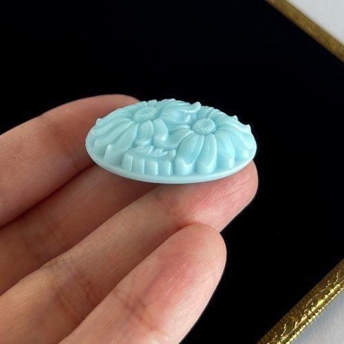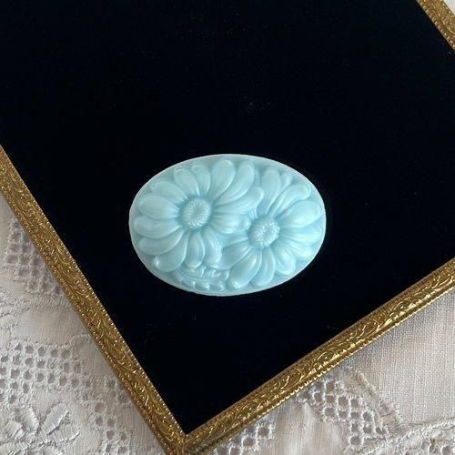 チェコ製ヴィンテージブローチ 水色ガラスのマーガレット