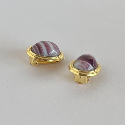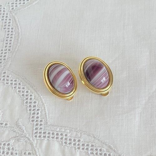 白ガラスに細い紫色のラインがマーブルに入った手作りのガラスストーンが使われています。
