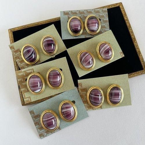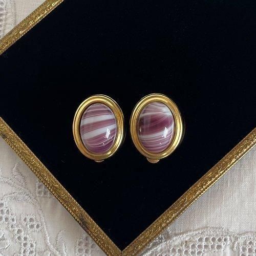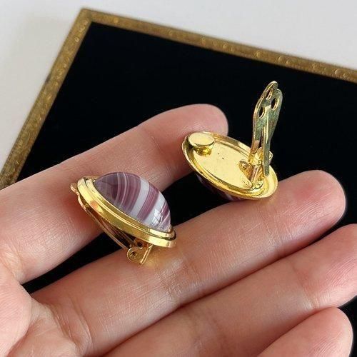 ラインが入った金色の枠と、ぽってりとした丸みのあるガラスストーンの組み合わせが、レトロ感たっぷりでとても可愛いです。