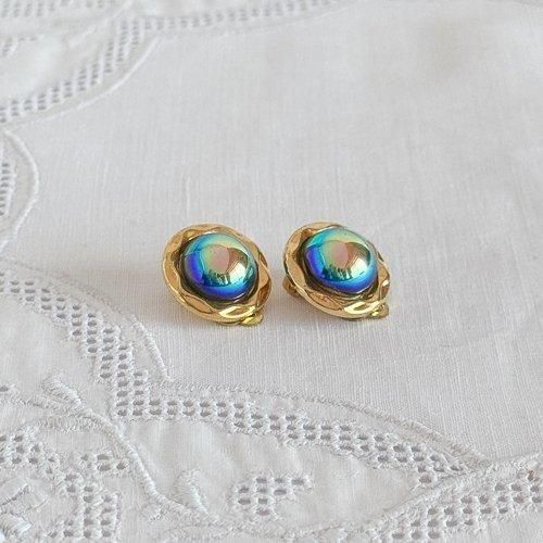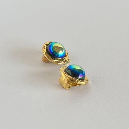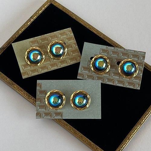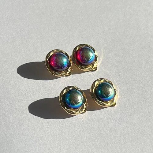 凹凸が入った金色の枠と、ぽってりとした丸みのあるガラスストーンの組み合わせが、レトロ感たっぷりでとても可愛いです。