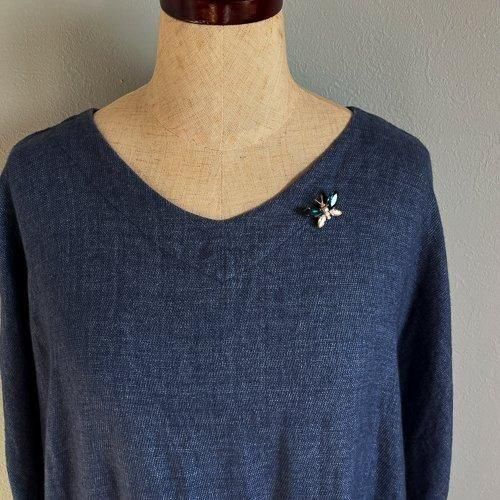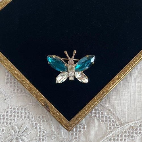 チェコ製ガラスストーンのブローチ 蝶々 深緑 小