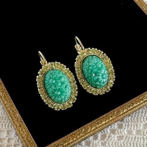 100年以上の歴史を持つジュエリー工房で制作されたもので、昔ながらの伝統的な手法で作られており、ひとつひとつ金属枠やラインストーンのパーツを溶接して手作りで作られています。