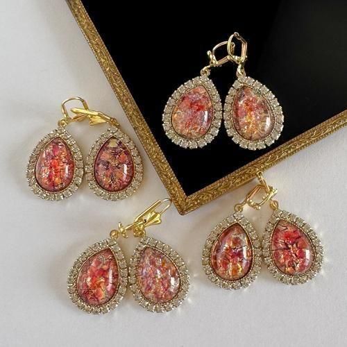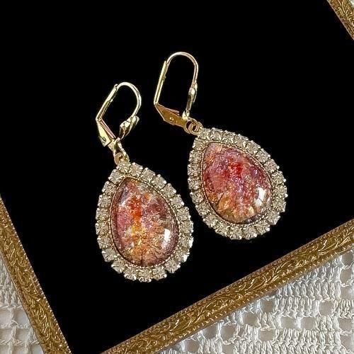 チェコガラスの町、ヤブロネッツで作られたピアスです。