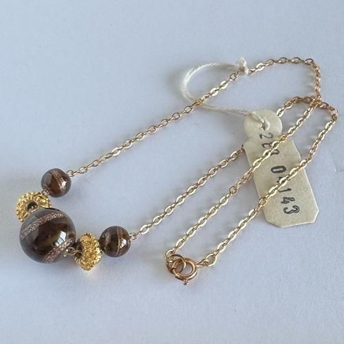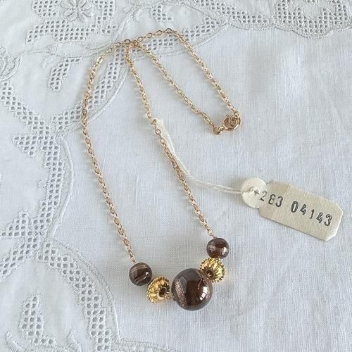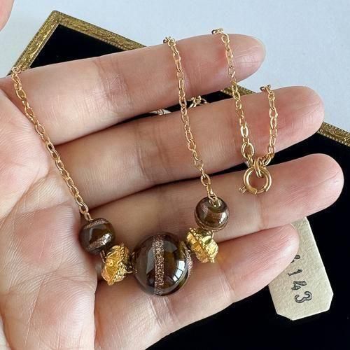 チェコのヴィンテージネックレス ハンドメイドガラス チェーン×茶色に金