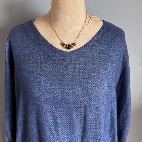 こちらのネックレスは、トップに直径約1.3cm、両側に約0.7cmのビーズが配置されています。