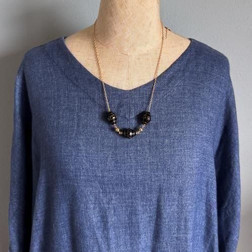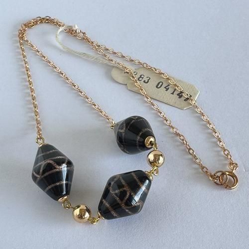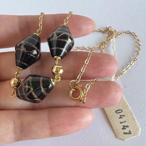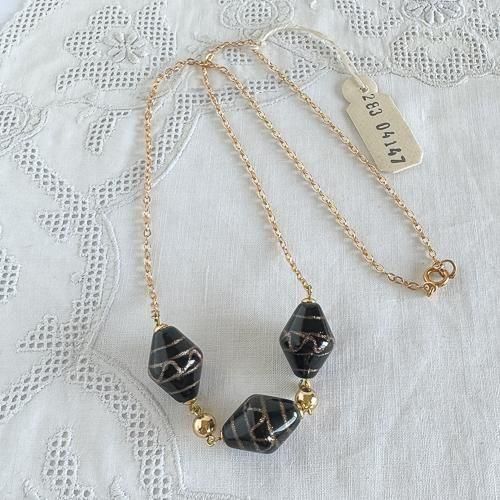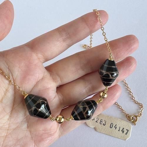 チェコのヴィンテージネックレス ハンドメイドガラス チェーン×黒に金
