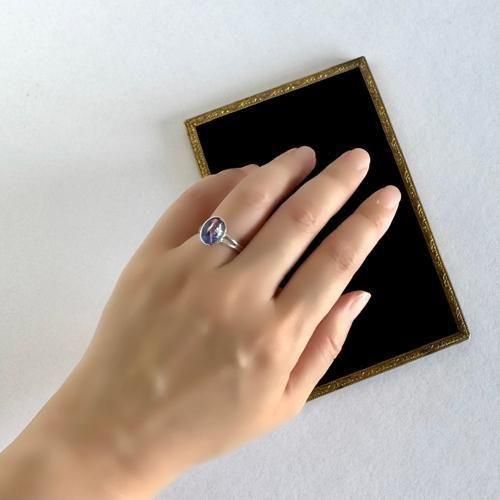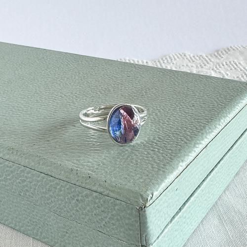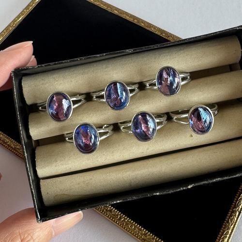 チェコ製 ハンドメイドガラスの指輪 小 銀箔入りガラス