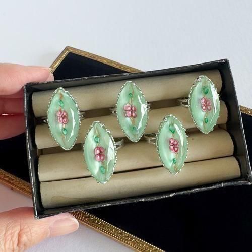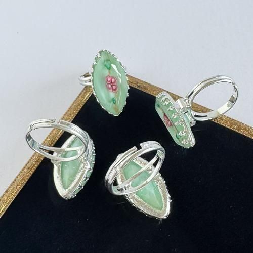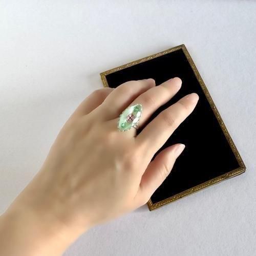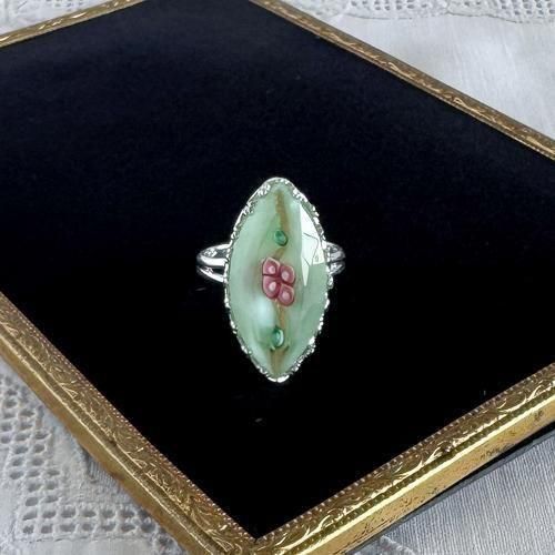 チェコ製 ハンドメイドガラスの指輪 花 緑色